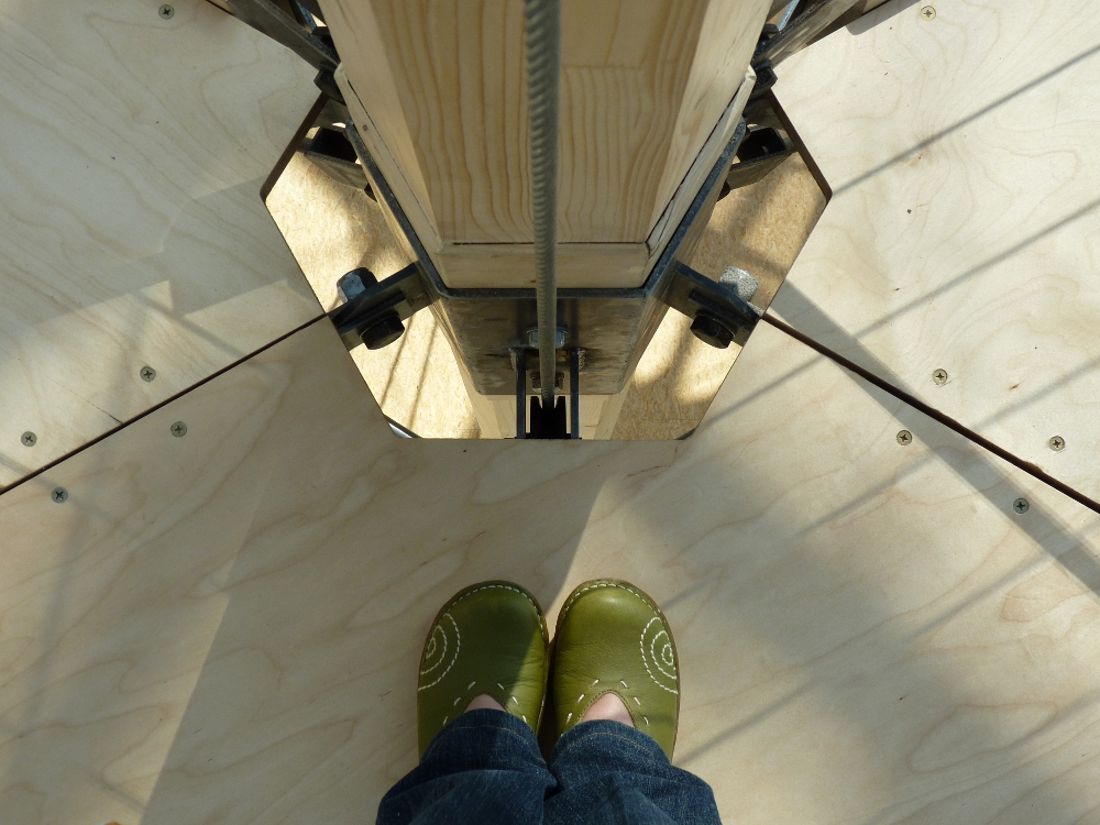 I am a little afraid of heights so I must confess that going up was a bit scary and I didn't like as much as laying down on the ropes. I what really liked about the piece, so much that I went to see it some times, is the fact that I can climb it and go up and I can touch it and feel it and I could also lay down on the ropes. It was the first time I could touch and feel a piece of art this way and I loved it. Besides this, I also liked the colours and the movement of the ropes.